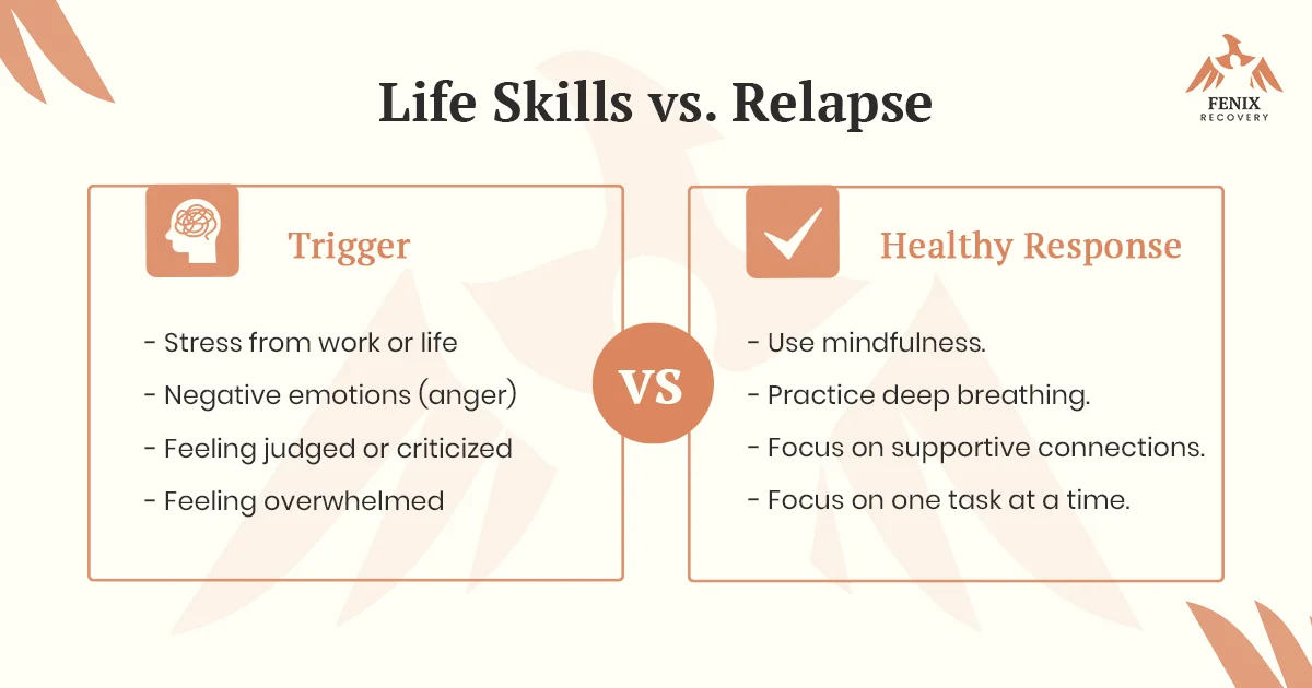 • Trigger identification: Life skills training helps you identify your personal triggers for relapse and develop strategies to avoid or cope with them effectively.