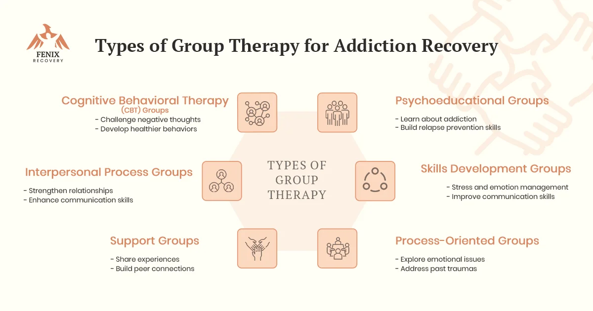 Group therapy comes in various forms, each with its own focus and approach. Here are some common types of group therapy used in addiction recovery: